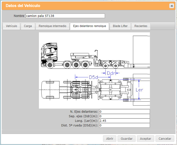 - Aproximar remolque a eje: En caso de seleccionar esta opción, para remolques en los que se puedan girar los ejes, se calcula en cada