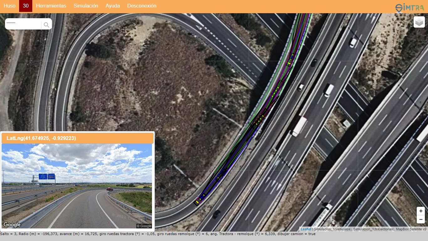 "SIMTRA" es una aplicación web que permite simular el recorrido de un vehículo de transporte, a lo largo de un vial (existente o nuevo), calculando la trayectoria descrita y el área de barrido, tanto por el vehículo, como su carga.