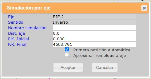 - Puntos kilométricos inicial y final: en caso en que se desee hacer una simulación parcial, permite definir el tramo del eje en el que